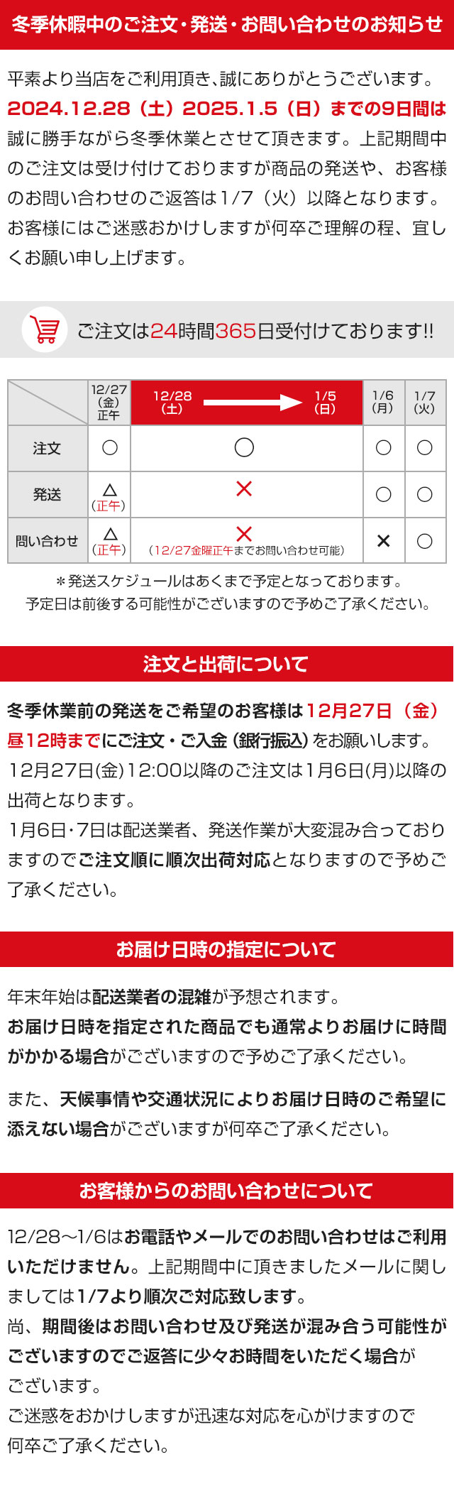 【年末年始の配送について】